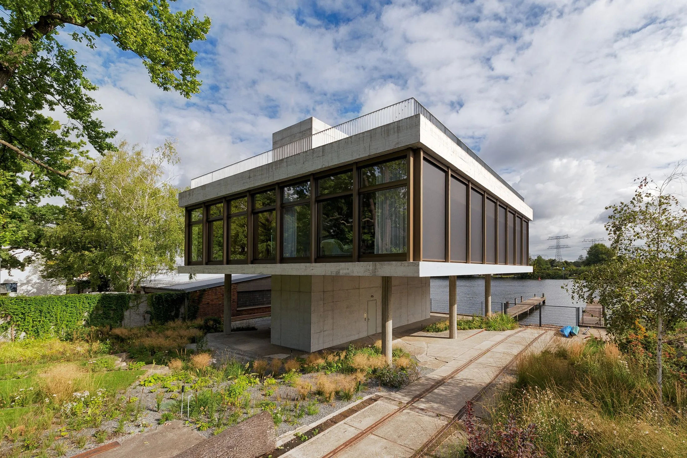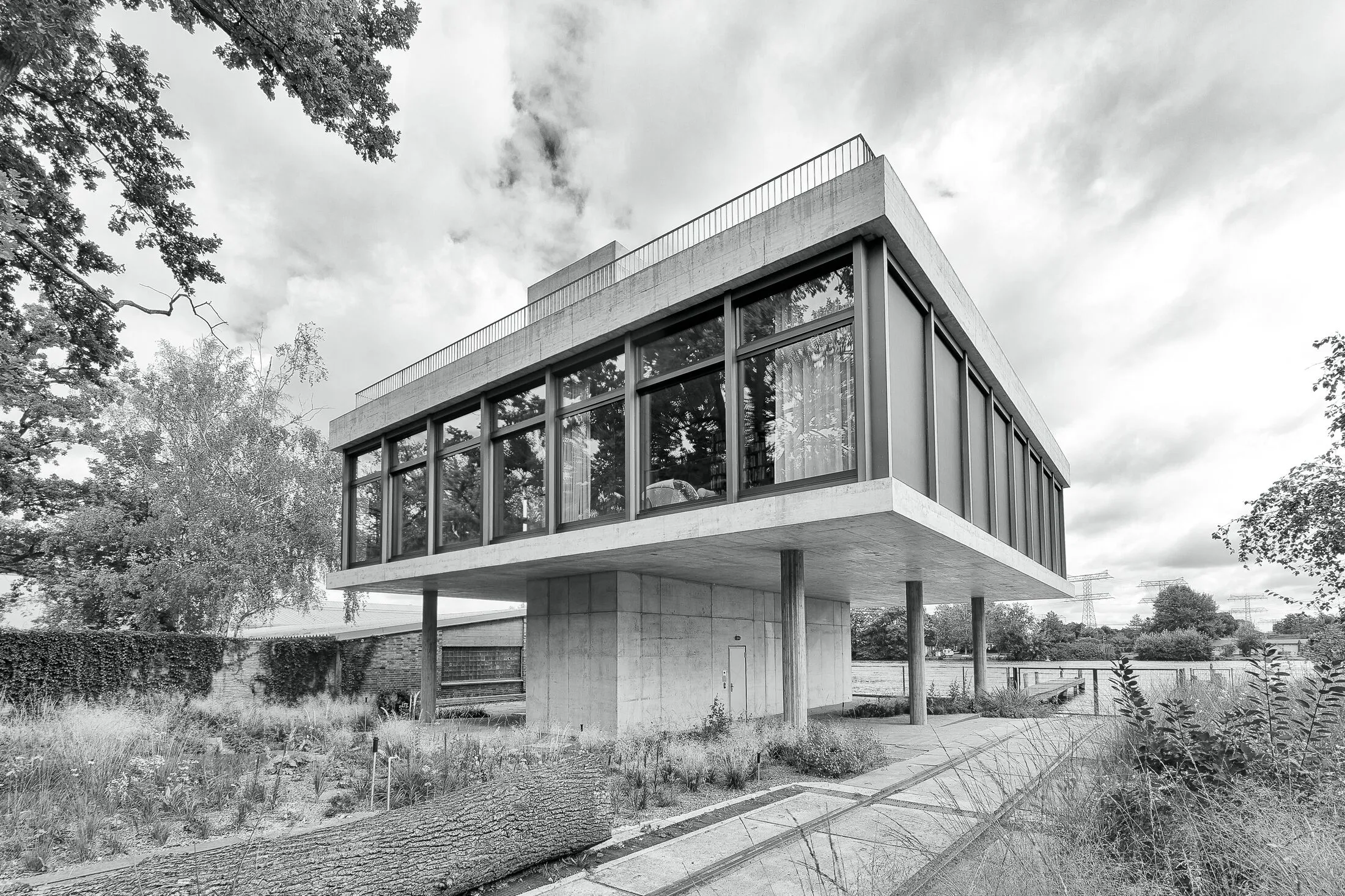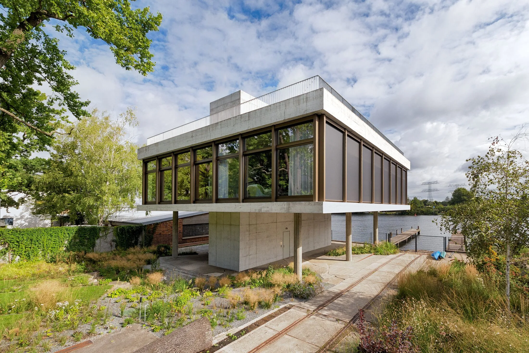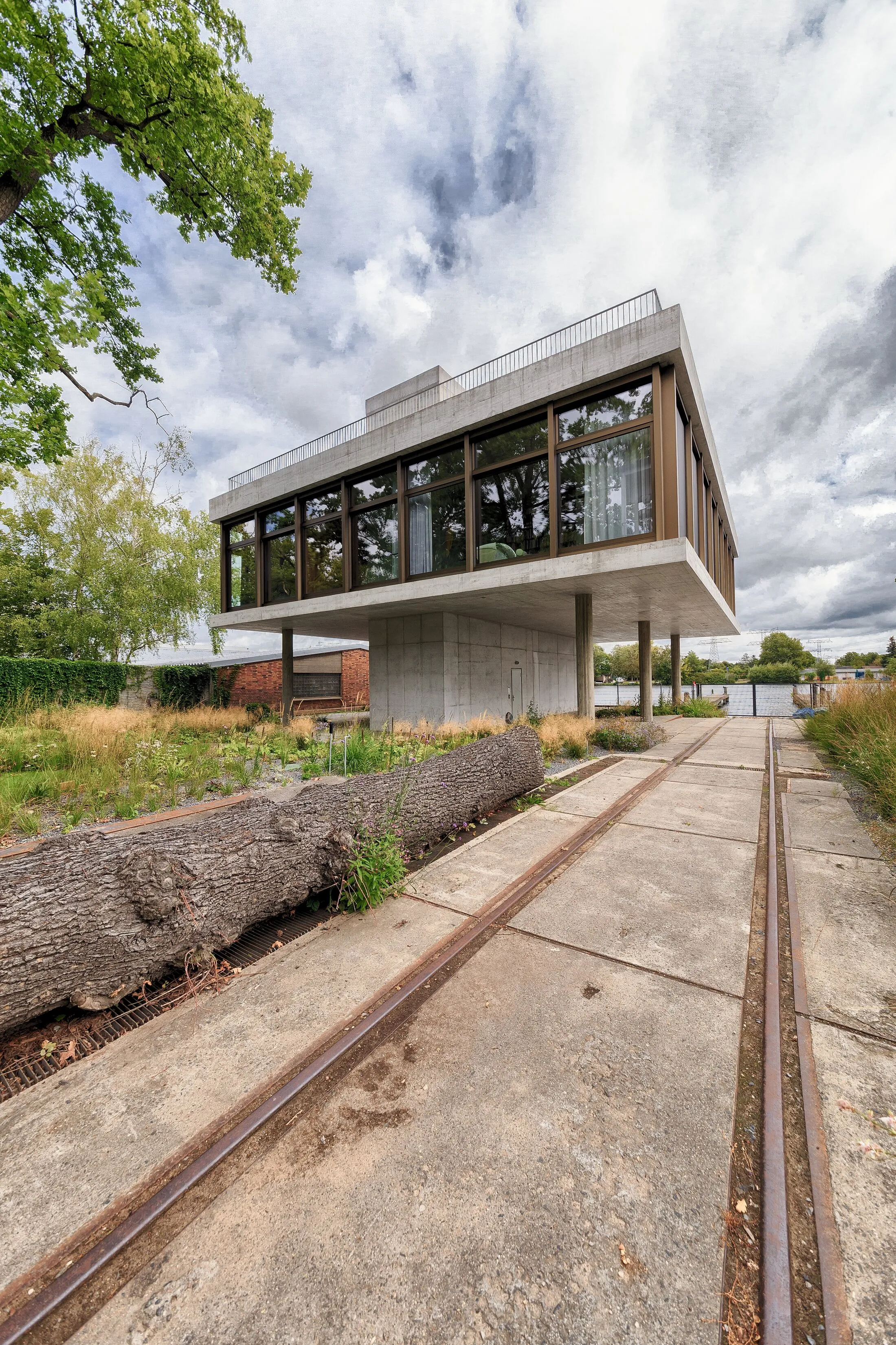 Right on the banks of the Spree in Berlin’s east stands the home designed by architect Tanja Lincke – surrounded by nature, ruins and industrial buildings. The fair-faced lightweight concrete walls were intentionally left in a raw state to blend seamlessly with the industrial character of the site.