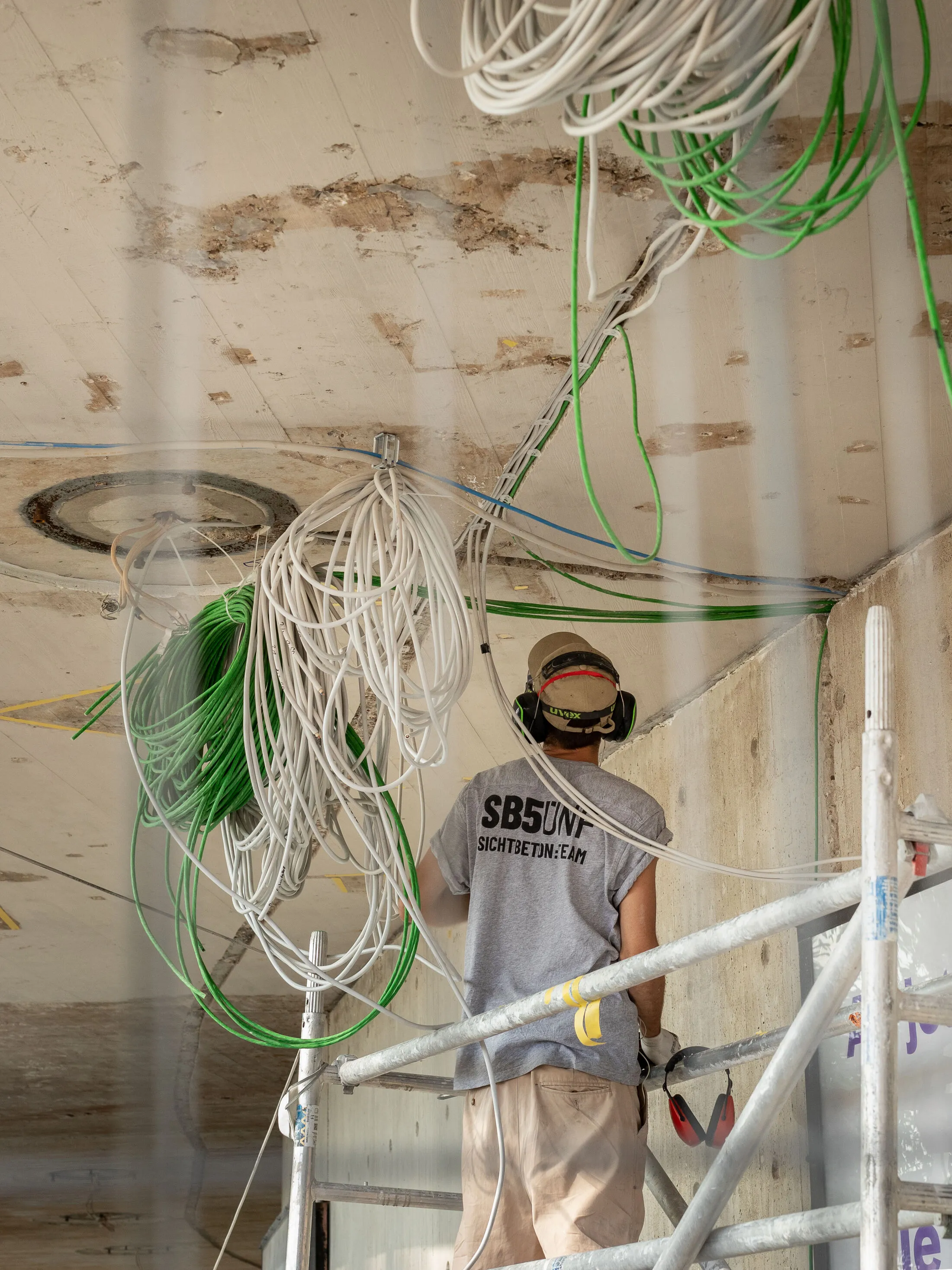 SB5ÜNF was one of only a few companies invited to tender and produce sample works, as we have sufficient manpower to carry out such a lengthy and demanding project to the highest standards. Our many years of experience working with listed buildings and protected surfaces, along with numerous references, made us the ideal partner. Our ability to combine the treatment of high-quality exposed concrete surfaces with concrete restoration provided the perfect foundation for the project.