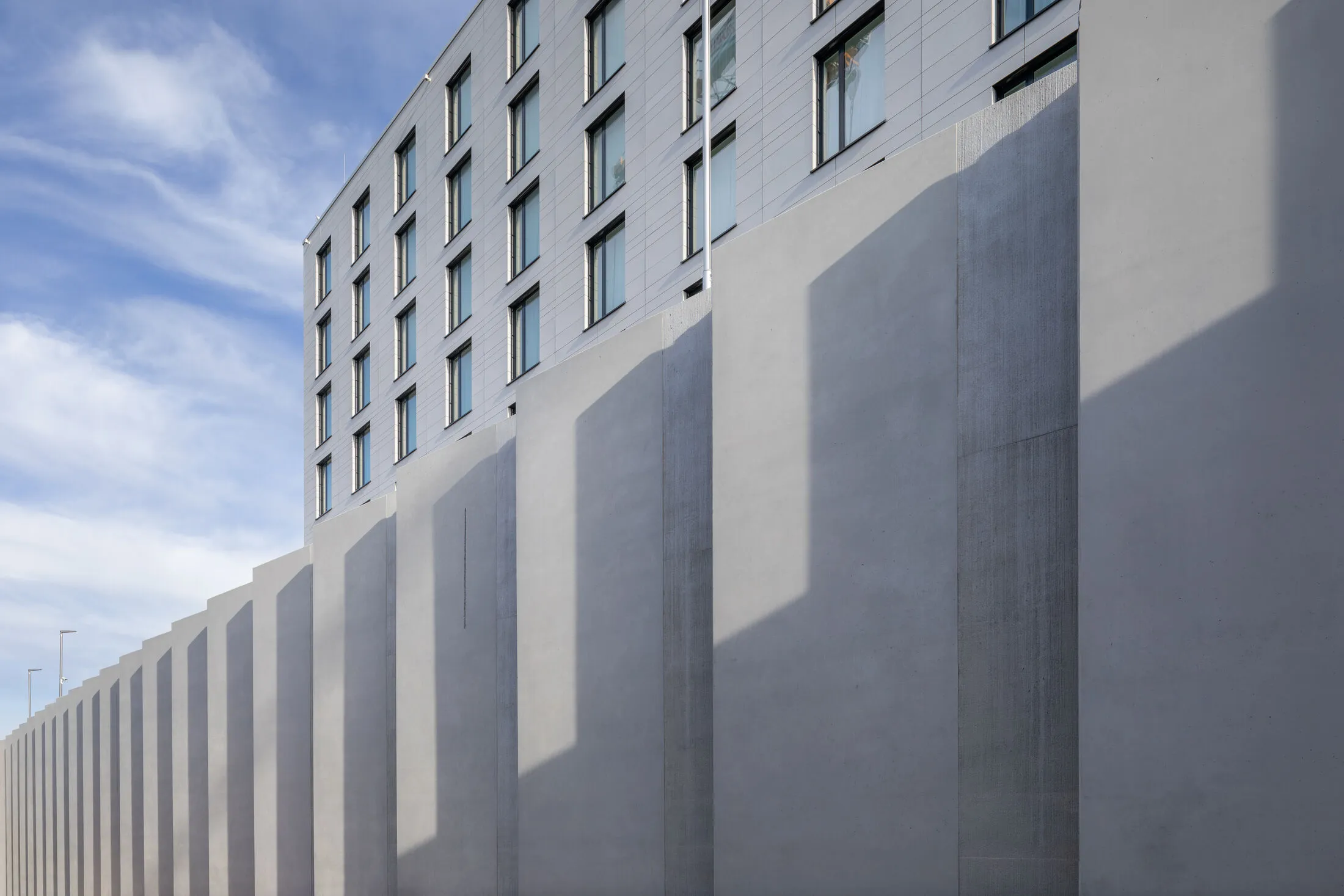Even with a precise planning phase as in this case, faults and irregularities occurred in the concrete chalices. This demonstrates that careful post-treatment cannot be avoided, even under the best conditions. In 2017, we were commissioned to develop a sample concept for the refurbishment of the joints, color correction, and the comprehensive adjustment of the tie holes.
